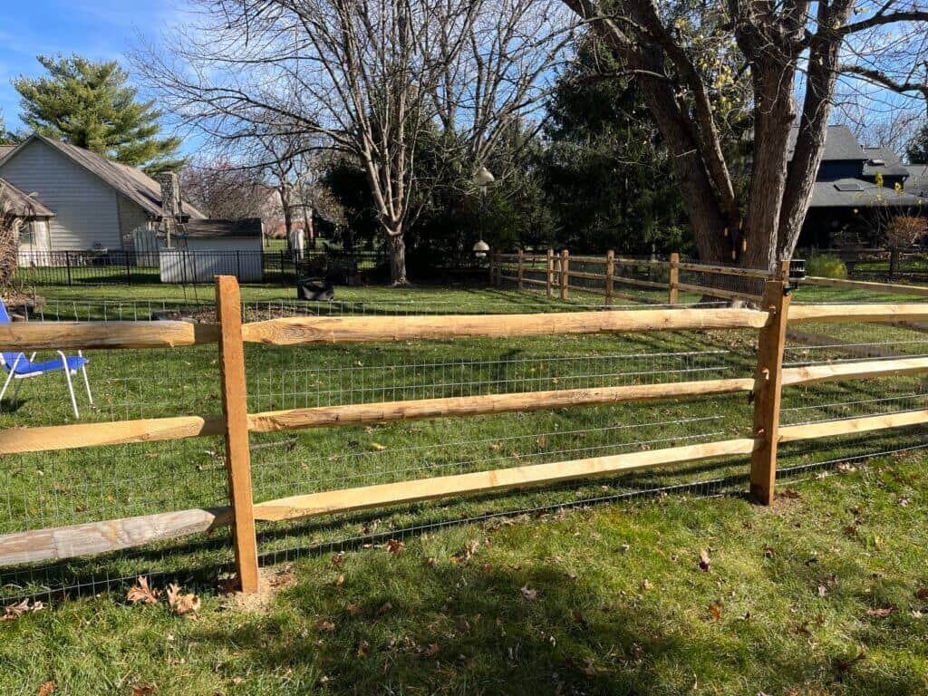 Bullseye Fence Split Rail fence gives the rustic look that is very appealing when the area fenced has a country or wooded setting. They are great for containing kids and pets when 2″x4″ welded wire is stapled to the posts & rails.